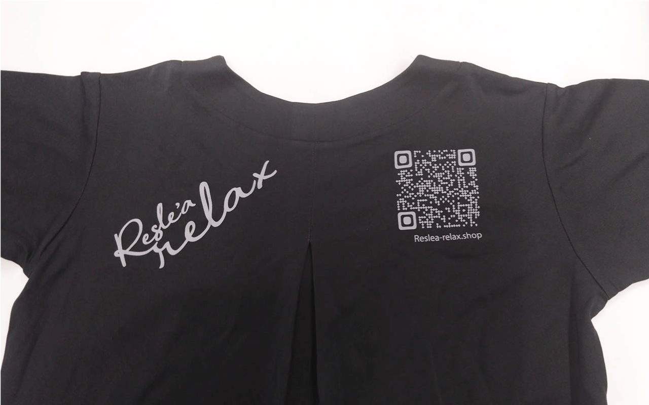 マークは背中に2か所、右肩にはQRロゴ、左肩にはブランドロゴをプリントしています。
